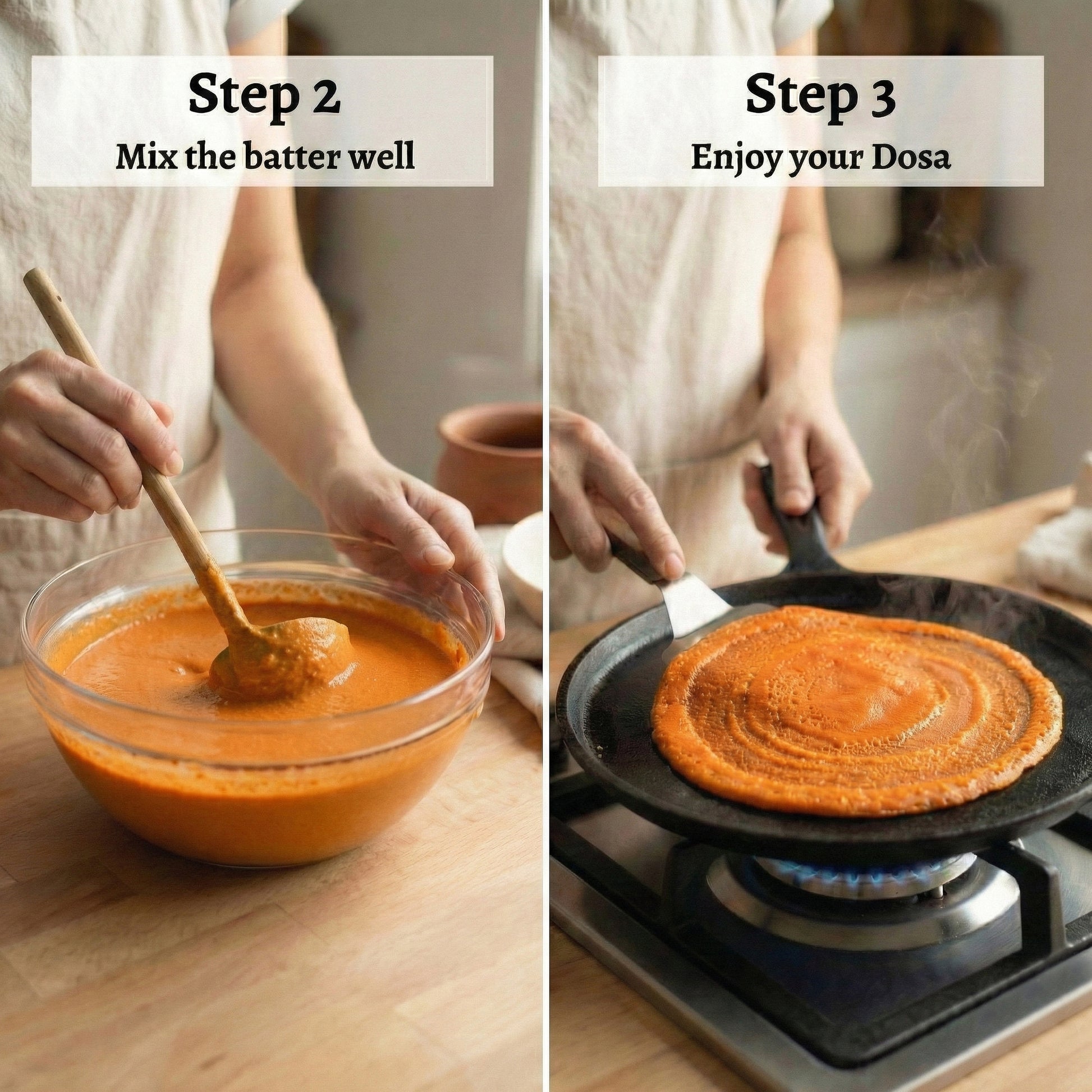 • Soft inside, crispy outside dosas